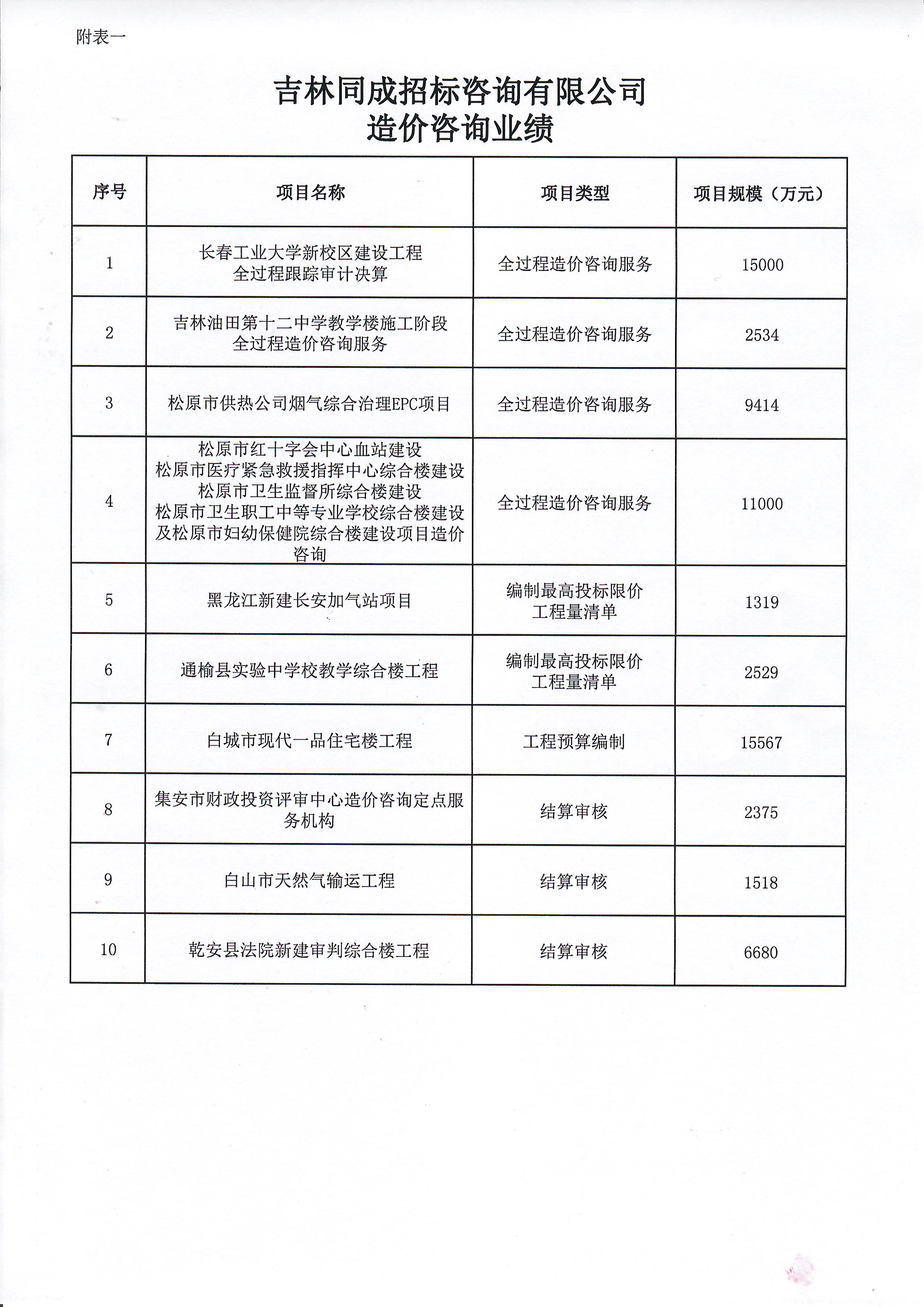 工程建設(shè)項(xiàng)目咨詢(xún)業(yè)績(jī)